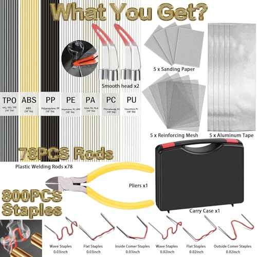 Plastic Welding Machine Car Bumper Repair Kit,6Types 1050 Staples Plastic Welding Kit Car Bumper Repair Kit Plastic Welding Repair Flat/Outside Corner/Inside Corner/Wave Staples