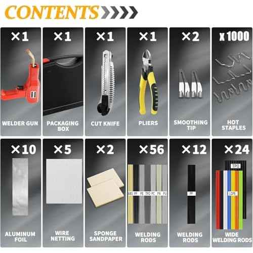 YIHUA 960-IV Bumper Repair Plastic Welder Kit with Power Switch, Indicator Light with 3 Tips, 20/20 Black & White Plastic Rods, 5 Polish Foam, Steel Mesh for Plastic Welding, Fuel Tank, Kayak Repair