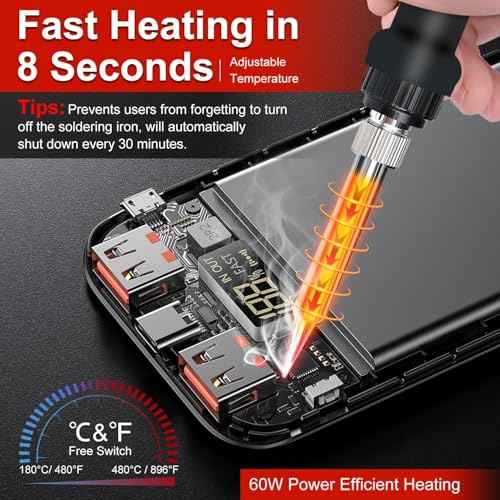 Electronics Soldering Iron Kit, SREMTCH 80W LCD Digital Soldering Gun with Adjustable Temperature Controlled and Fast Heating Ceramic Thermostatic Design, ON-Off Switch 20pcs Solder Kit Welding Tool