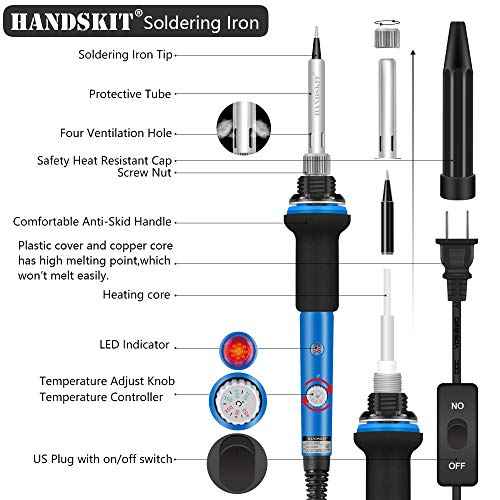 Soldering Iron, Soldering Kit, 19-in-1 60w Soldering Iron Kit Electronics Adjustable Temperature Welding Iron with ON/OFF Switch, Digital Multimeter, 5 Tips, Desoldering Pump, Screwdriver, Tweezers