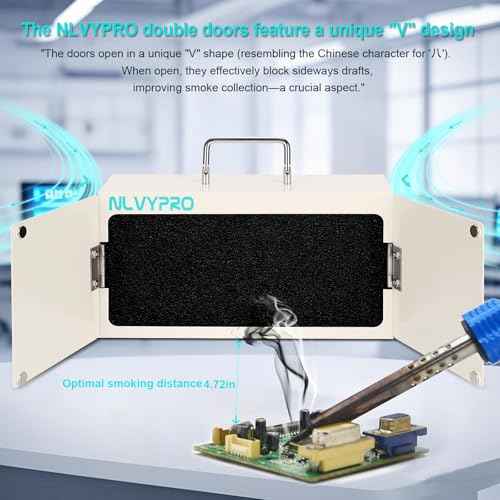 Solder Fume Extractor, Extended Double Door anti-Smoke Leak Design, Double-Layer H13 HEPA Flter, Dual-Speed 3200RPM Fan, 110-240V Wide Voltage, Suitable for Jewelry, Welding Fume Filtration