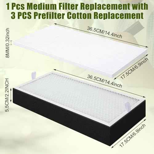 LemonRoad 4 Pcs Filter Refills Accessories Includes Medium Filter Replacement with Prefilter Cotton Replacement for Solder Fume Extractor Soldering Smoke Absorber, 14.4 x 6.9''