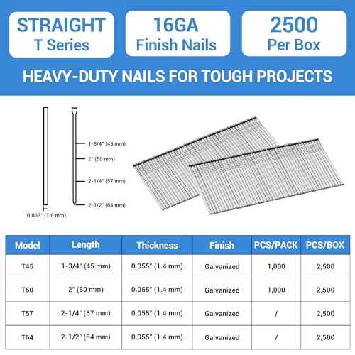 meite 16 Gauge Finish Nails, 2-Inch Galvanized 16GA Finish Nails, Small Straight Finishing Nail, Ideal for Woodworking, Upholstery, and Framing Projects (2,500 Counts)
