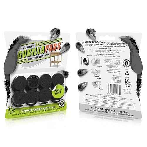Slipstick GorillaPads CB147 Non Slip Furniture Pads/Gripper Feet (Set of 16) Self Adhesive Rubber Floor Protectors, 1 inch Round, Black