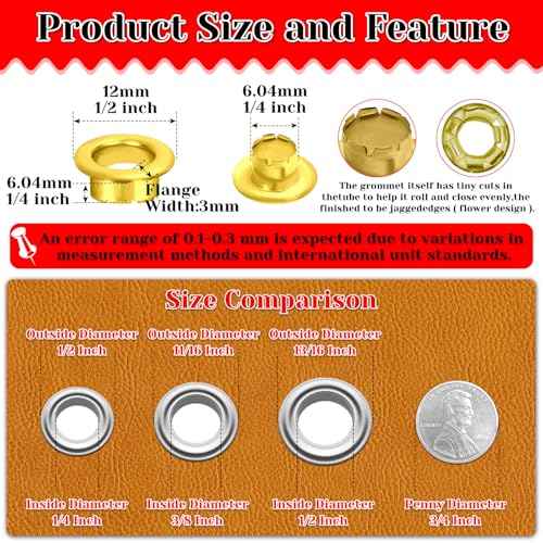 803Pcs Grommet Eyelet Pliers Kit, 1/4 Inch Grommet Tool Kit with 800 Metal Eyelets, Grommet Hand Press kit for Leather Crafts(Inside Dia: 6.4mm/Outer Dia: 12mm (A.I.S.)/Flange Width: ~3mm)
