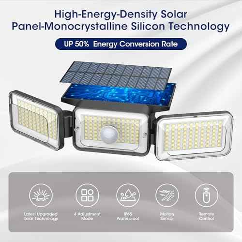 Solar Lights Outdoor Waterproof, Motion Sensor & Flood Outdoor Lights with Remote Control, 4 Adjustable Modes, 3000LM & 218 LED, High-Energy-Density Solar Panel-Monocrystalline Technology, 2 Pack