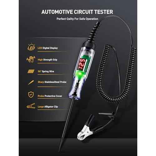 Automotive Test Light with 3-48V LED Digital Voltage Display, Auto Circuit Tester with Voltmeter & Dual Color Polarity Indicate, Electric Test Pen w/Stainless Probe for Car/Truck/SUV Checker