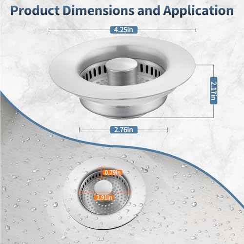 3-in-1 Stainless Steel Kitchen Sink Drain Strainer ? Pop-up Sink Stopper with Sealing Ring, Anti-Clog & Odor-Proof Drain Filter, Fits 3-1/2 Inch Sink Drain Holes, Easy Installation