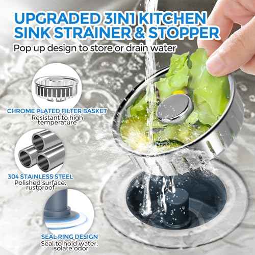 zaa Kitchen Sink Drain Strainer - Kitchen Sink Stopper, 304 Stainless Steel Sink Drain Stopper, Sink Protector for Kitchen with Anti-Clog Filter, Fit US Standard 3-1/2'' Sink Drain Hole, Silver