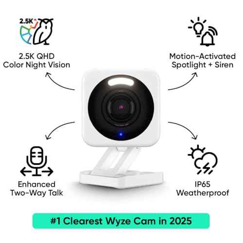 WYZE Cam v4 (Latest Model), 2.5K AI Security Camera, Indoor/Outdoor Cameras for Home Security, Baby Monitor & Pet Camera, Vibrant Color Night Vision, No Subscription Required, Free Expert Help