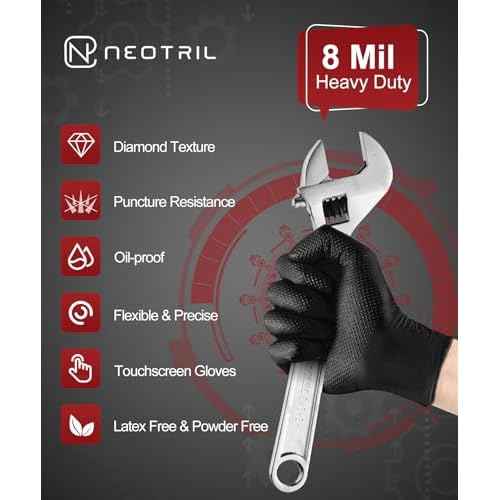 8 Mil Heavy Duty Disposable Nitrile Gloves with Diamond Texture Grip Rubber Gloves Latex & Powder Free