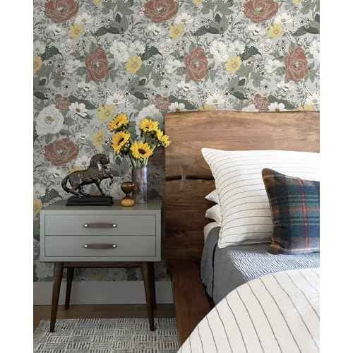 Guvana Floral Peel and Stick Wallpaper Vintage Contact Paper Red/Yellow/White Flowers Wall Paper Botanical Leaf Self Adhesive Wallpaper for Bedroom Livingroom Decor 78.7"x17.32"