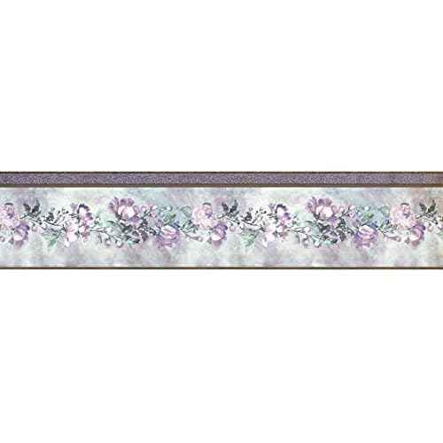 CONCORD WALLCOVERINGS ¢â Wallpaper Border Floral Vintage Pattern Flowers Leaves for Living Room Dining Area Bedroom, Lilac Pink Gold Green, 15 ft by 5 in 65114