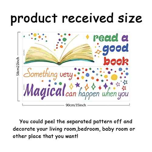 SUPERDANT Reading Book Wall Sticker Something Very Magical Can Happen When You Read A Good Book Wall Decal Colorful Stars Polka Dots Inspirational Quote Sticker for Classroom Kids Room Wall Decor