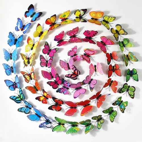 100PCS 3D Colorful Butterfly Wall Stickers,Removable Butterflies DIY Art Crafts,Decorations for Party Room Fridge Decor Decal Sticker,Mixed Color