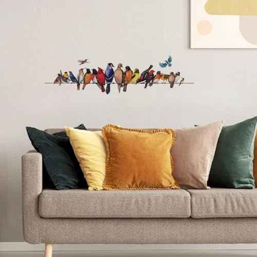 Colorful Bird Wall Decals Peel and Stick Nature Wall Sticker Wall Murals Waterproof Wall Decor for Girls Bedroom Living Room Nursery, 23.2 * 5.5 * 0.06