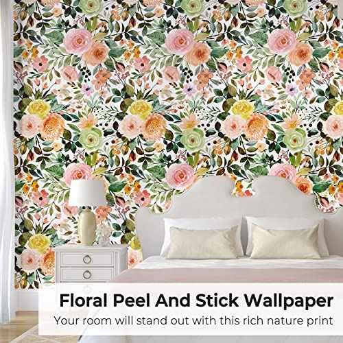 Beautysaid Wallpaper Peel and Stick Floral£ºBoho Textured Wall Paper for Bedroom Bathroom Renter Friendly Waterproof Pink Watercolor Modern Wallpaper for Kitchen Cabinet(Watercolor,17.5x78.7 inch)