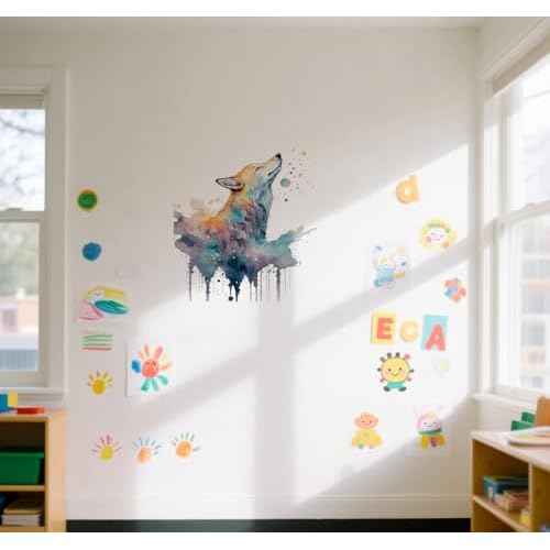 Adorable Watercolor Wolf Wall Stickers for Nursery, Cute Lovely Forest Animal Decals Vinyl Waterproof Peel Removable Wall Decor for Kids Baby Room Bathroom Toilet Playroom Classroom Preschool