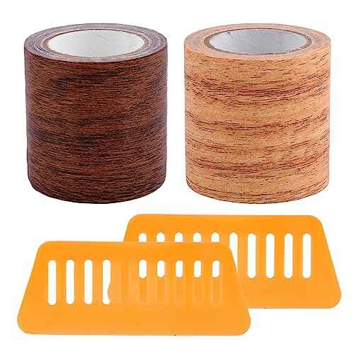 2 Roll Wood Grain Repair Tape, Self Adhesive Wood Colored Tape for Furniture, Flooring, Cabinets, Doors, Windows, Handmade DIY with 2 Scraper(Size:2.24inch*15feet)