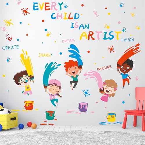 Colorful Kids Art Wall Decal, Every Child is an Artist Inspirational Quote, Paint Splash Design, Classroom Playroom Decoration (Colorful)