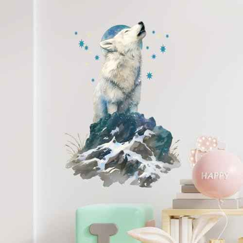 Howling White Wolf Wall Decals Removable Watercolor Animal Vinyl Stickers for Nursery Living Room and Bedroom Decor Peel and Stick Wall Art