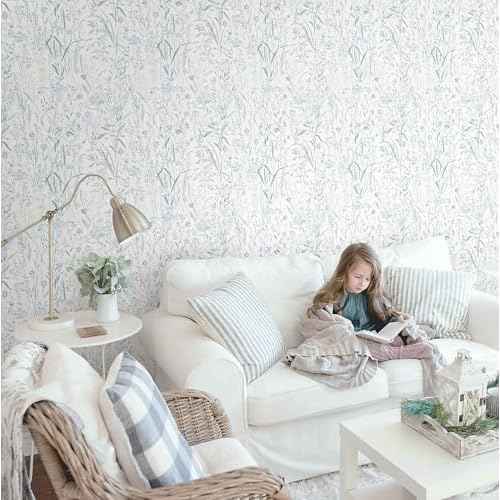 Heroad Floral Peel and Stick Wallpaper Boho Contact Paper Morandi Watercolor Sage Green Blue Flower Wallpaper Modern Wall Paper for Bedroom Removable Self-Adhesive Thicken Decoration 17.3In x 14.8Ft