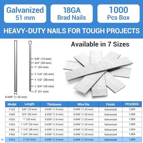 meite 18 Gauge Brad Nails, 2 Inch 18GA Brad Nails Galvanized Small Finishing Nail Gun Nails for Pneumatic, Electric Brad Nailer Gun (1,000 Counts)