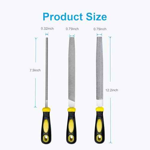 3Pcs Metal File Set, 8-Inch Professional High Carbon Steel Metal File, Includes Flat, Round, Half-Round Metal Files, Durable Hand Files Work for Metal Wood Smoothing Shaping Deburring