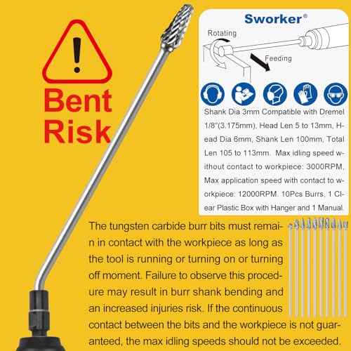 10Pcs Long Carbide Burr Set 1/8" Shank Total L 4.4" Compatible with Dremel Die Grinder Bits Port Grind Metal Cast Iron Steel Aluminum Cylinder Head Engine Intake Exhaust Manifold Tight Area