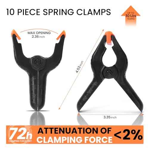 ECY Spring Clamps Heavy Duty 4.5 Inch 10 Pack - Plastic Rust Proof Clamps with Non-Slip Pads for Backdrop, Crafts, Woodworking, Photography | Multipurpose Holders for Tarps, Pool Covers & Gluing