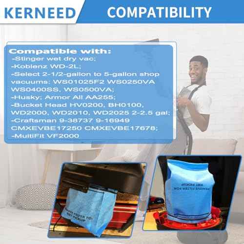8 Pack Wet Dry Filter Bags Compatible with Work-shop WS01025F2, Craftsman 9-38737, MultiFit VF2000, Select 2-1/2 to 5-Gallon Shop Vac Vacuum Stinger Craftsman Husky (with 3 Retaining Bands)