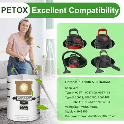5-8 Gallon Vacuum Filter Bags Replacement for Shop Vac Bags, Type E 90661 9066133, Type H 90671 9067133, VF2004, VHBS, VDBS, PETOX High-Efficiency Disposable Vaccum Collection Filter Bags 3 Pack