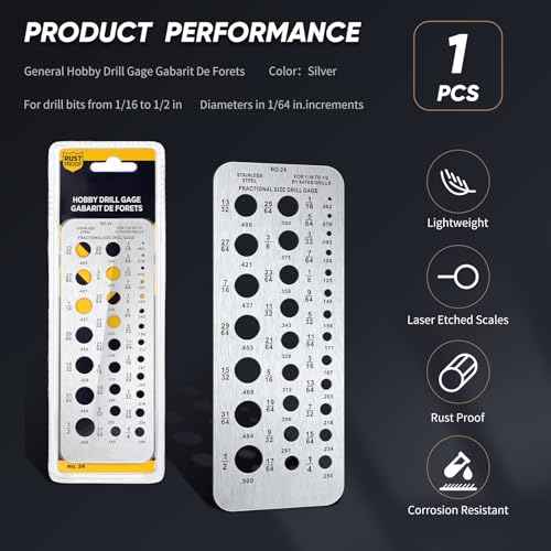 Weewooday Stainless Steel Drill Gauges for 1/16 Inch to 1/2 Inch Size Bits, 17/64-1/2 0.062-0.250 Bolt and Wire Diameter Index Gauge, 29-Hole Use for Accurate Measurement Equivalents(Silver)