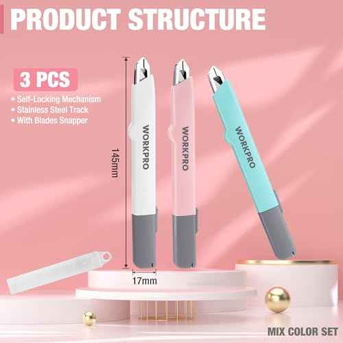 WORKPRO Premium Utility Knife Retractable Snap-off blade, Gift for Men/Women Heavy Duty Box Cutter Set, Razor Knife Exacto Craft Knives, with 10 Extra 9mm Blades, Pack of 3