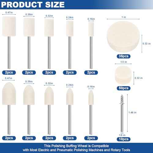 115PCS Polishing Buffing Wheels for Dremel Tool Accessories, 1/8" Shank Polishing Wheels for Dremel Polishing Kit | Professional Wool Restoration & Buffing Kit for Metal, Jewelry, Wood