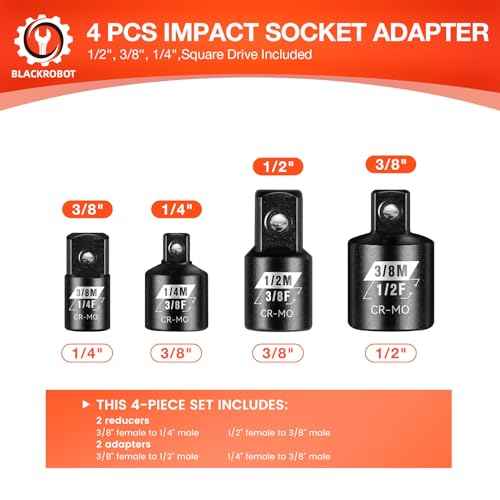 BLACKROBOT 4 Piece Impact Socket Adapter Set, 1/4" 3/8" 1/2" SAE Drive Socket Adapter Set, Square Adapter and Reducer Conversion Set for Impact Driver Wrench, Cr-Mo Steel