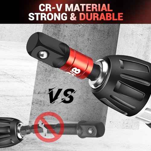 8-Piece Impact Socket Adapter Set for Drill, 1/4" 3/8" 1/2" Hex Shank Impact Driver Socket Adapter, Socket to Drill Adapter