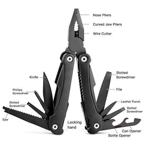 14 IN 1 Multitool Pliers with Pocket Clip, Portable Multi Tool, Pocket Knife Camping Multitool, Needle Nose Pliers with Replaceable Wire Cutters, Screwdrivers, Saw - Gifts for Men, Dad, Husband