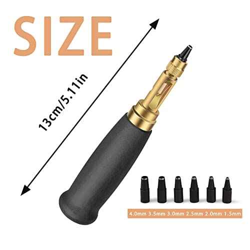 Adjustable Screw Hole Punch Automatic Hole Punch Tool with Black Wooden Handle Bookbinding Tool Leather Hole Punch with 6 Tips Size 1.5mm/2mm/2.5mm/3mm/3.5mm/4mm