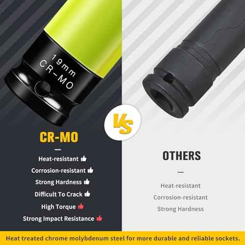 BOEN 19mm 1/2" Drive Wheel Protector Impact Socket, Non-Marring Lug Nut Thin Wall Deep Socket Set, Chrome-Molybdenum Steel, 6 Point, Color-Coded Protective Socket