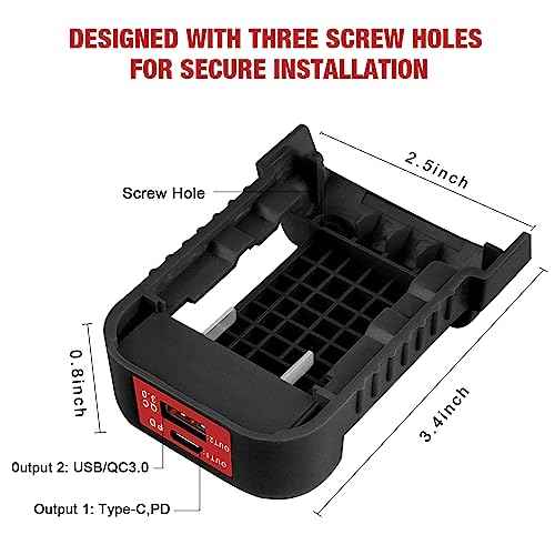 2 Pack USB Charger Adapter Compatible for Dewalt 20V Li-ion Battery with USB Output & Type-C Fast Charging Interface(Adapter Only)£¨Not Made in Dewalt