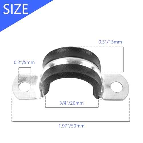 3/4 Inch Reinforced Rigid Pipe Strap, 2 Holes U Bracket Cable Clamp Hanger, Rubber Cushioned Insulated Clamp, Conduits Strap Clamps for Pipe Fixing on Various Surfaces, 10 PCS(20mm)
