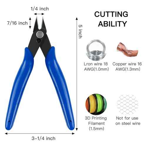 HongWay 5pcs Micro Flush Cutters With Internal Spring, 5 Inches Blue - Side and Diagonal Cutters for Electronics, Heating Wire, Model Sprue, Soft Copper Wire Snips