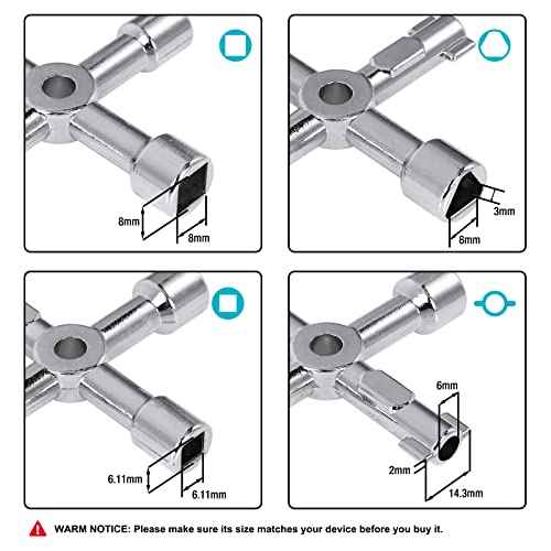 DURATECH 4 Way Utility Key, Multi-functional Water Key, 1-Pack, for Valve, Faucet, and Spigots