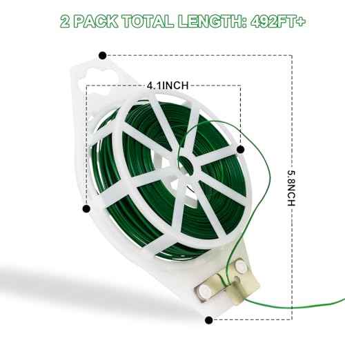 2 Pack 492FT Garden Twist Tie with Built-in Cutter, Rustproof Green Coated Plant Ties for Gardening, Flexible Reusable Tomatoes Ties Support for Indoor Outdoor Home and Office Use
