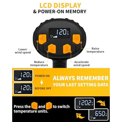 Heat Gun 1500W 120¡ÆF-1020¡ÆF(50¡ÆC-550¡ÆC) Fast Heating Heavy Duty Hot Air Gun Kit Variable Temperature Control Overheat Protection with 4 Nozzles for Crafts, Shrinking Pvc, StrippingPaint