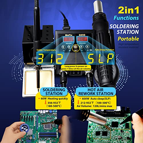 MeFix 8898 Portable 2 in 1 Soldering Iron Station SMD Hot Air Rework Station