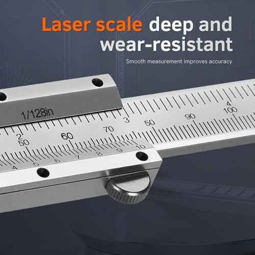 6-Inch/150mm Vernier Caliper Measuring Tool, Fractional Calipers, High-Hardness Steel Mechanical Micrometer, Non-Digital Slide with Dual Imperial/Metric Scale, 0.02 mm&1/128 Inch