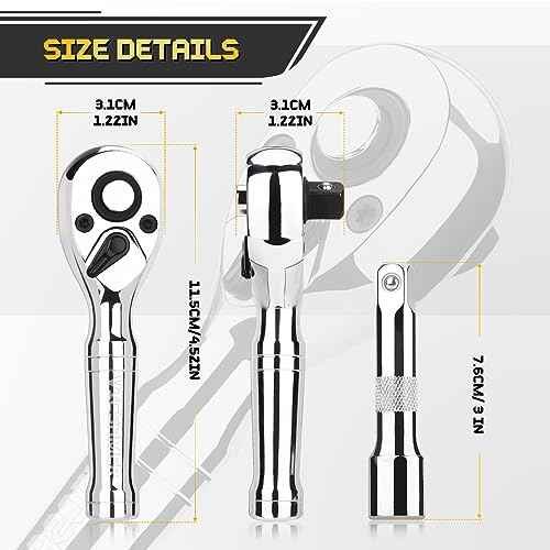 Stubby Ratchet Set- 3/8" Drive Ratchet Handle with a Extension Bars, Gift for Men 72-T Reversible Quick Release Head Premium Mini Ratchet Wrench for Narrow Spaces