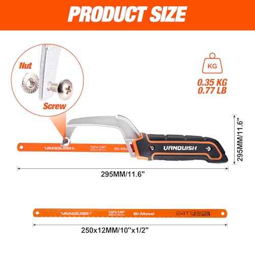VANQUISH Aluminum Frame Mini Wood Hack Saw with 2 Piece Extra Flexible Bi-Metal HSS Blades Cutter Hand Hacksaw for Woodworking and Metal NW4851